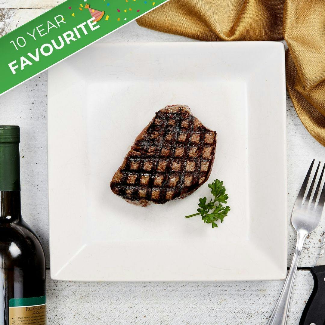 COOKING TIP: Because it's low in fat, this piece tends to cook quickly. A cast-iron skillet is perfect to sear it on both sides before finishing it in the oven with some rosemary and garlic. Aim for an internal temperature of 130-135°F for medium-rare or up to 140°F for medium. Top steak with grilled asparagus, pan seared scallops and creamy bearnaise. Bon Appetit.