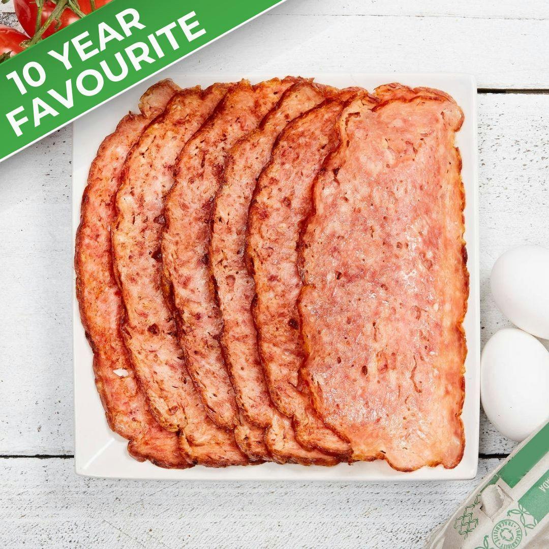 Made with turkey locally raised in Simcoe, ON, Townsend Butchers is here to provide a leaner alternative to traditional pork bacon. With less fat and fewer calories, but still a ton of savoury flavour, turkey bacon is a good option for those who can't get enough bacon but are sticking to a leaner diet. Keep in mind that because of the lower fat content, turkey bacon does not crisp up the same way you expect from traditional pork bacon.