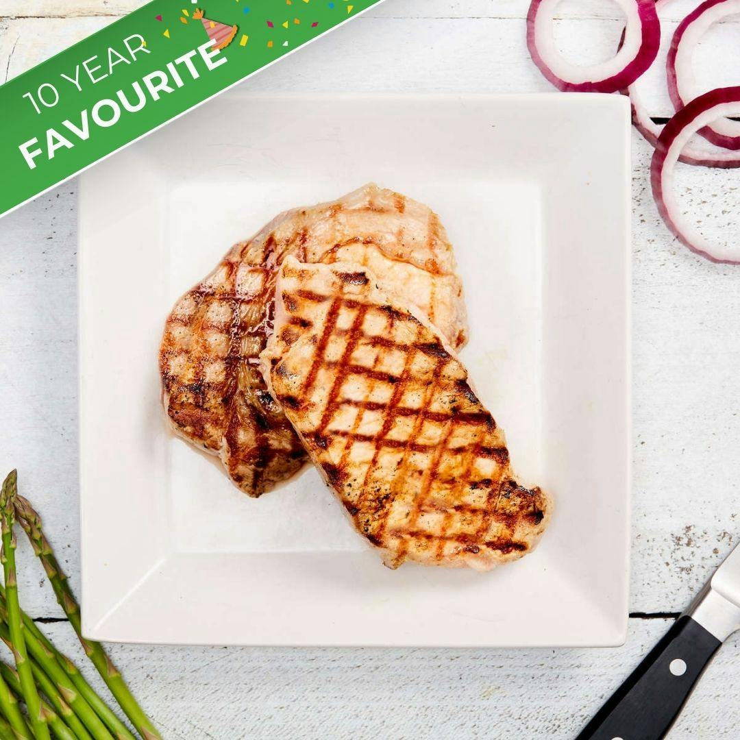 COOKING TIP: There's so much you can do with these boneless pork chops. They can be breaded and pan-fried, seasoned and put on the grill, or marinated and baked. If you're feeling a little wild, try wrapping your pork chops in bacon. First, season the pork chops with salt, pepper, garlic powder and any other dry seasoning you fancy. Then, wrap each chop with about 2 thin slices of bacon and brush all that goodness with some maple syrup. Pop them in an oiled baking pan and into the oven until they reach an internal temperature of 145°F. You can even broil them at the end if you want to crisp up the bacon further.