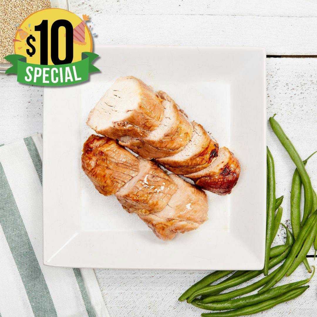 This prized tenderloin is from Townsend Butchers in Simcoe, ON. Pork tenderloin is a long, narrow boneless piece of meat that runs along the backbone. It is the most tender cut on a pig and has a low fat content. The lack of fat translates to this piece being milder in flavour. If that's not your thing, the key to pair it with a bold sauce.
