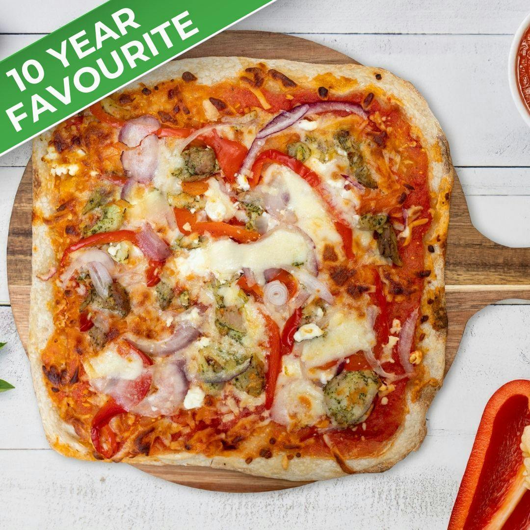 COOKING TIP: Simply thaw your pizza for 20 minutes while preheating your oven to 450°F. Place your pizza on the centre rack and bake for 11-13 minutes, or until the cheese is perfectly melted and bubbly. Be sure to watch for that golden perfection. Once baked, remove from the oven and let it cool for a few minutes on a rack. Slice, serve, and savour the deliciousness.