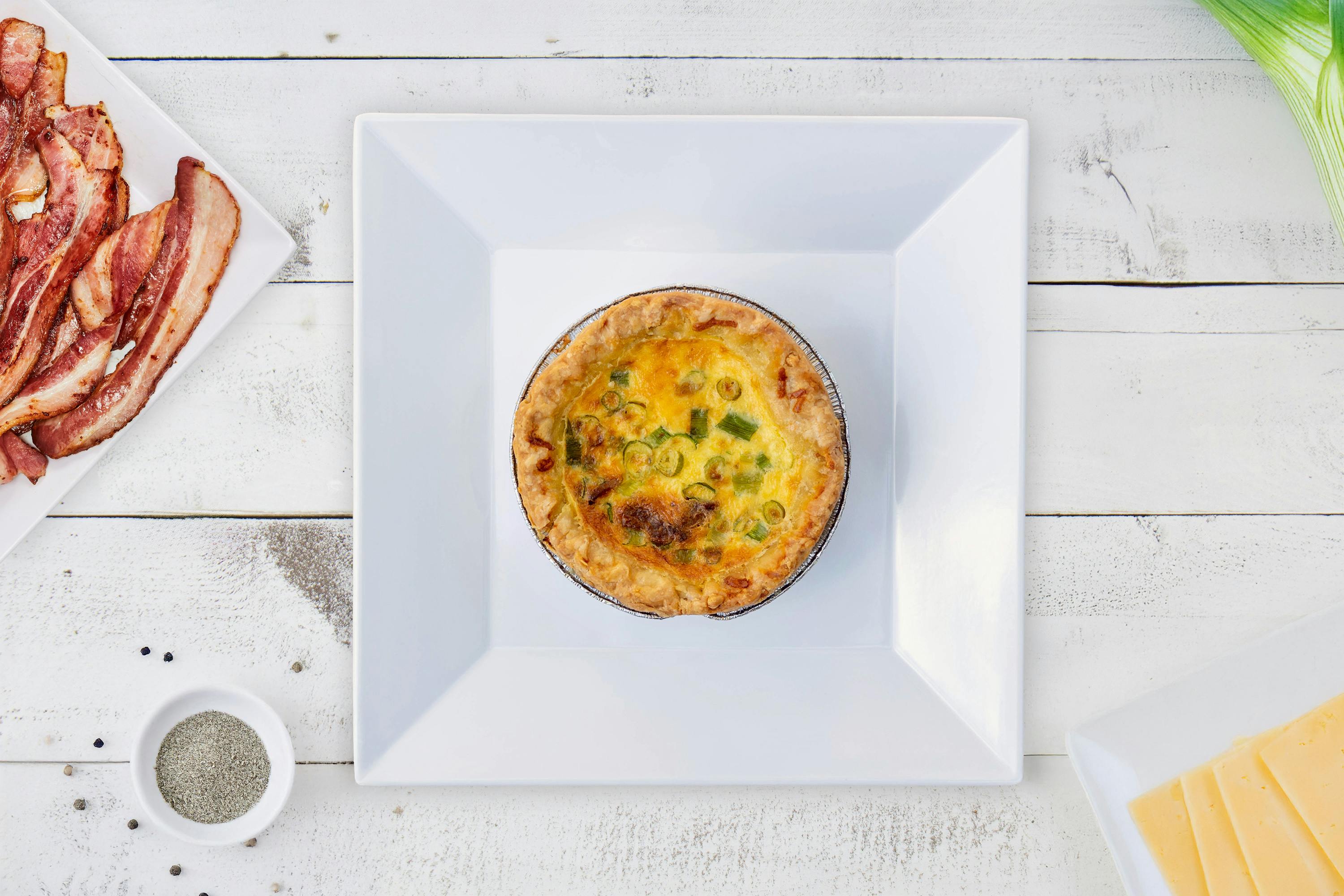 Mabel’s Bakery’s Bacon Cheddar Quiche is a delightful single-serving version of their classic quiche. Nestled in a flaky, all butter crust, featuring Perth Pork Farms nitrate-free, pasture-raised bacon, local cheddar cheese, and eggs, complemented by organic green onions for a touch of freshness. We cannot think of a better way to start the day than with this comforting, flavourful quiche that’s perfect for breakfast, brunch, or anytime you crave a satisfying treat.