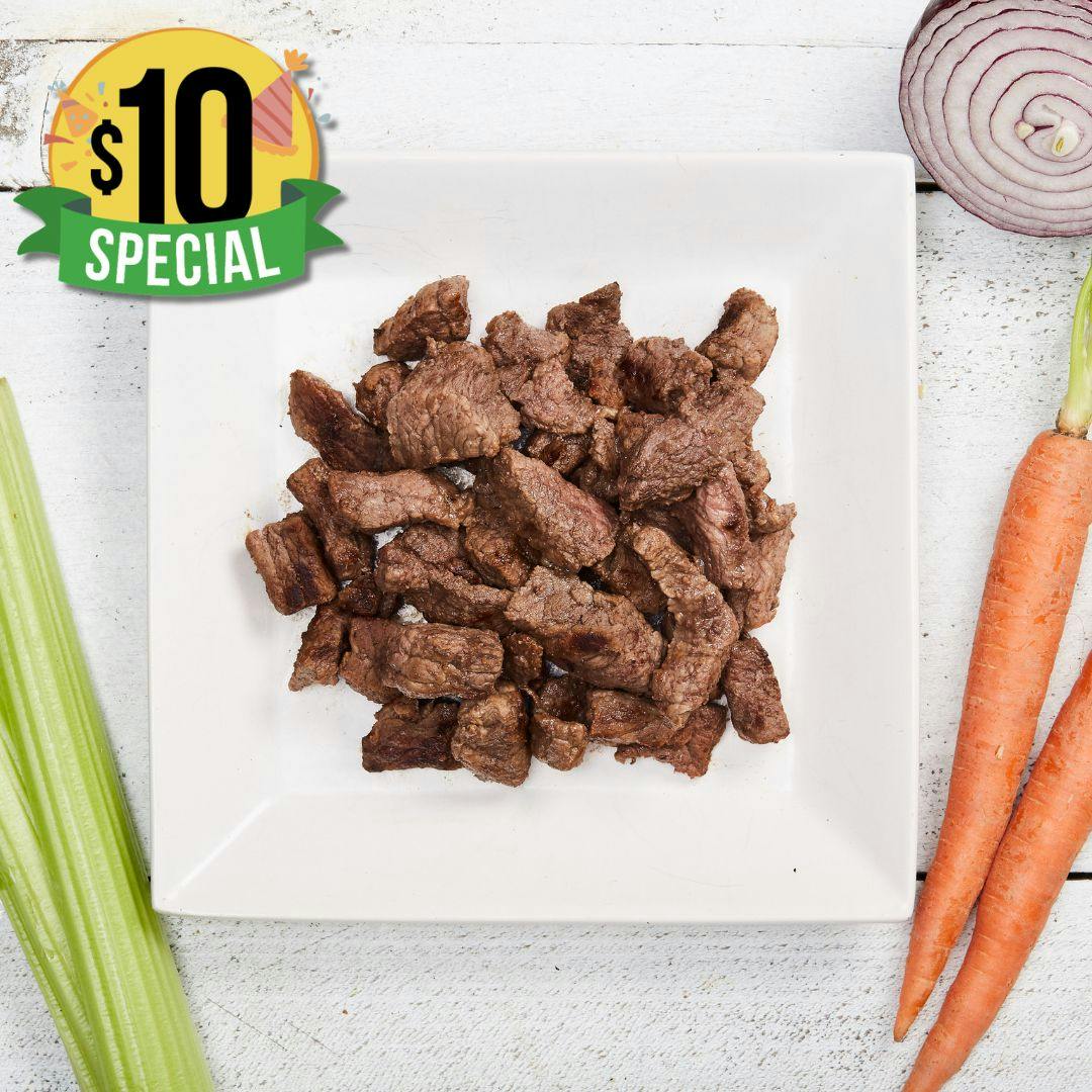 100% Alberta grain-finished AAA Stir Fry beef is tender, quick-cooking, and packed with flavour. These juicy strips are the perfect way to add protein and iron to your meals. Versatile and delicious, this stir fry beef belongs in every box. Expertly butchered by our friends at Pre Pak Meats, a family-run business in Calgary dedicated to delivering high-quality, locally sourced products.
