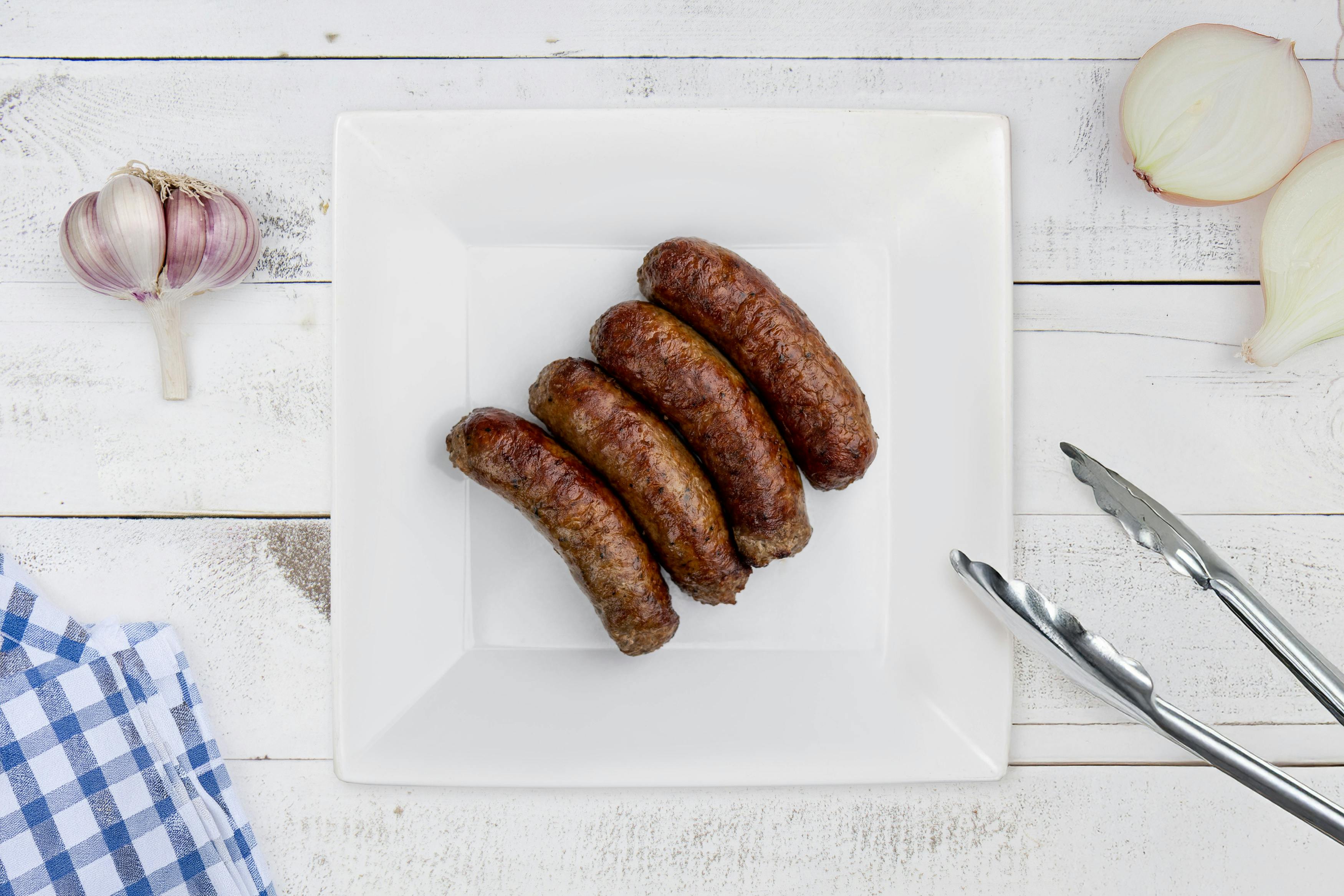 COOKING TIP: Cook your frozen Garlic Beef Sausages straight from the freezer. Bake at 375°F (190°C) for 25–30 minutes, turning halfway, or pan-fry over medium heat, turning frequently, until the internal temperature reaches 160°F (71°C). Let rest for a few minutes to lock in the garlicky juices.