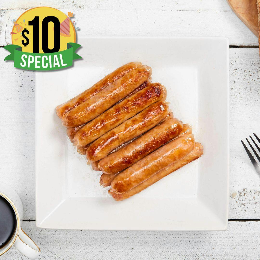 This chicken twist on the traditional breakfast sausage is just what you've been looking for. The apple juice provides a subtle sweetness that makes these the perfect addition to a healthy and tasty breakfast. Consciously sourced, with no preservatives, fillers, and/or artificial flavours. Enjoy Legends Haul's chicken sausages with a refreshing glass of freshly squeezed orange juice and some crispy waffles. We know you will be back for more!