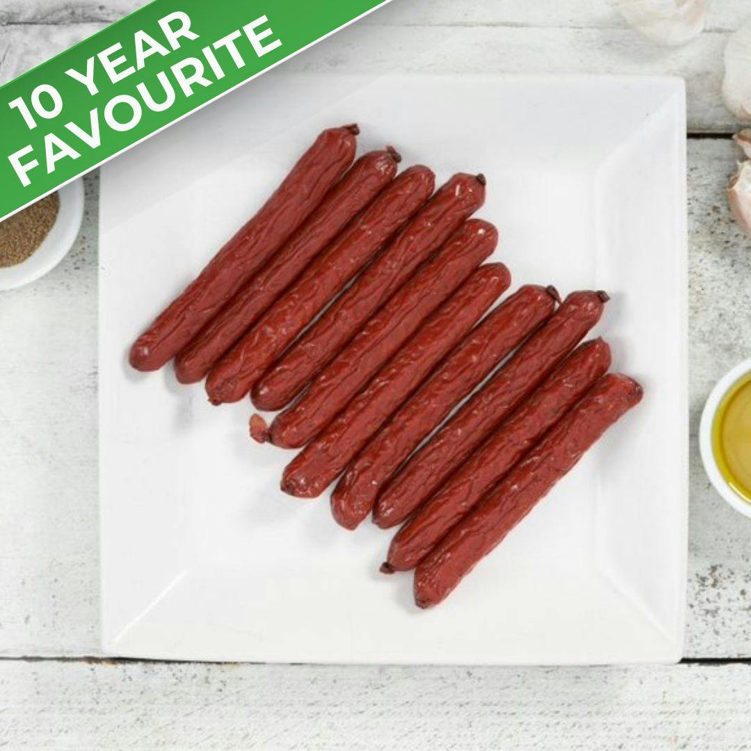 SERVING TIP: This shelf stable product does not need any refrigeration. Because it arrives in your box with your other frozen food, you should remove the sausage sticks and store them in a cool dry area until you are ready to consume them. Once the package is opened, the product should be refrigerated and is best if consumed within 2 weeks. These snacks can travel with you on your next summer road trip, day at the beach, or around the campfire. You can also throw them into packed lunches or slice them up with veggies and cheese for a quick afternoon snack.