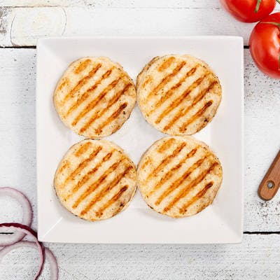 COOKING TIP: Toss these chicken burgers on the grill or in the oven just like you would a traditional beef burger. You're looking for an internal temperature of 165°F to know they're done. Buffalo hot sauce is a good way to add some heat to your burger or perhaps some guacamole. Onions and tomatoes also sound good. Maybe some pickles. We're getting carried away, but you get the point.