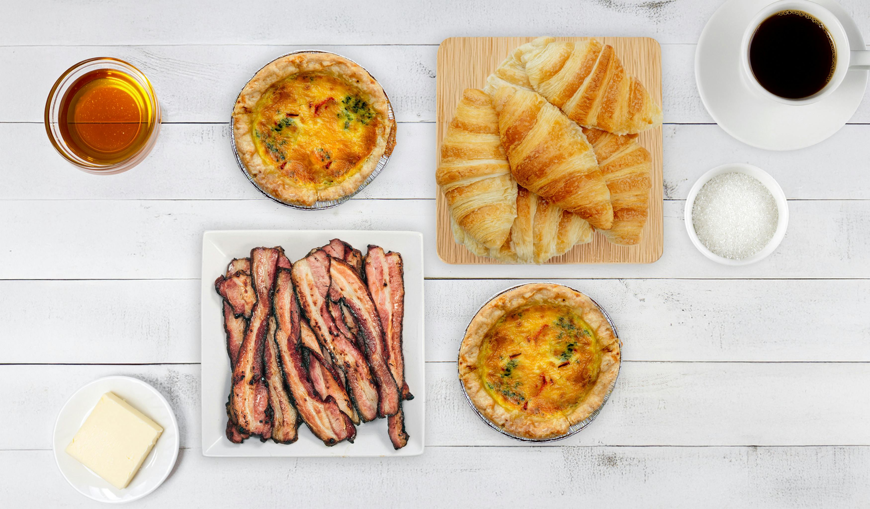 Perfect for relaxed mornings or easy hosting, this bundle delivers bakery-quality flavour with minimal effort. Simply thaw the quiches and proof the croissants overnight, then bake, serve, and enjoy a delicious brunch at home.