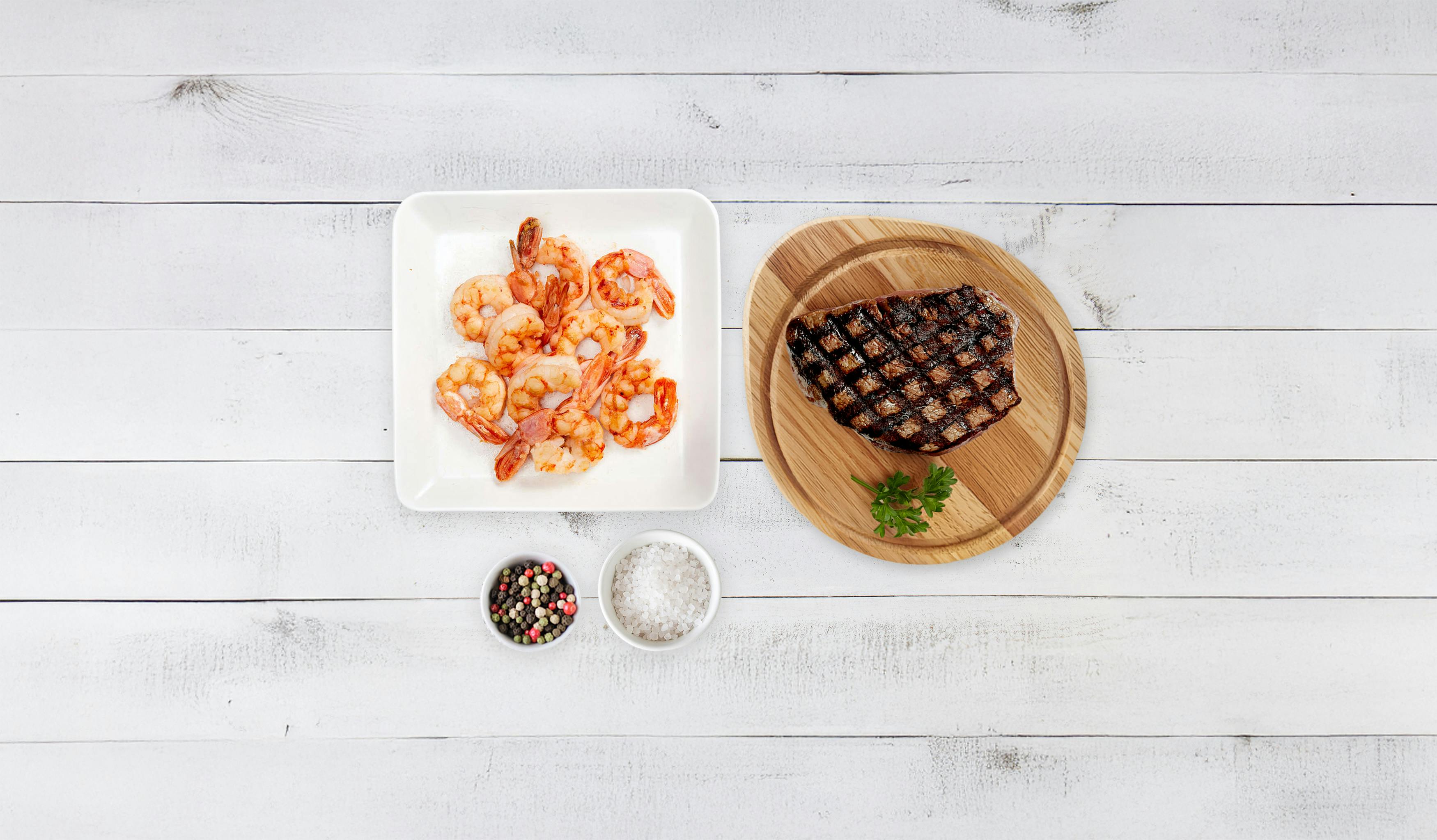 Turn any night into a special occasion with the Surf & Turf Bundle. Featuring a premium AAA filet mignon paired with wild Argentinian shrimp, this classic combination brings together rich, tender beef and perfectly sweet, ocean-fresh flavour.