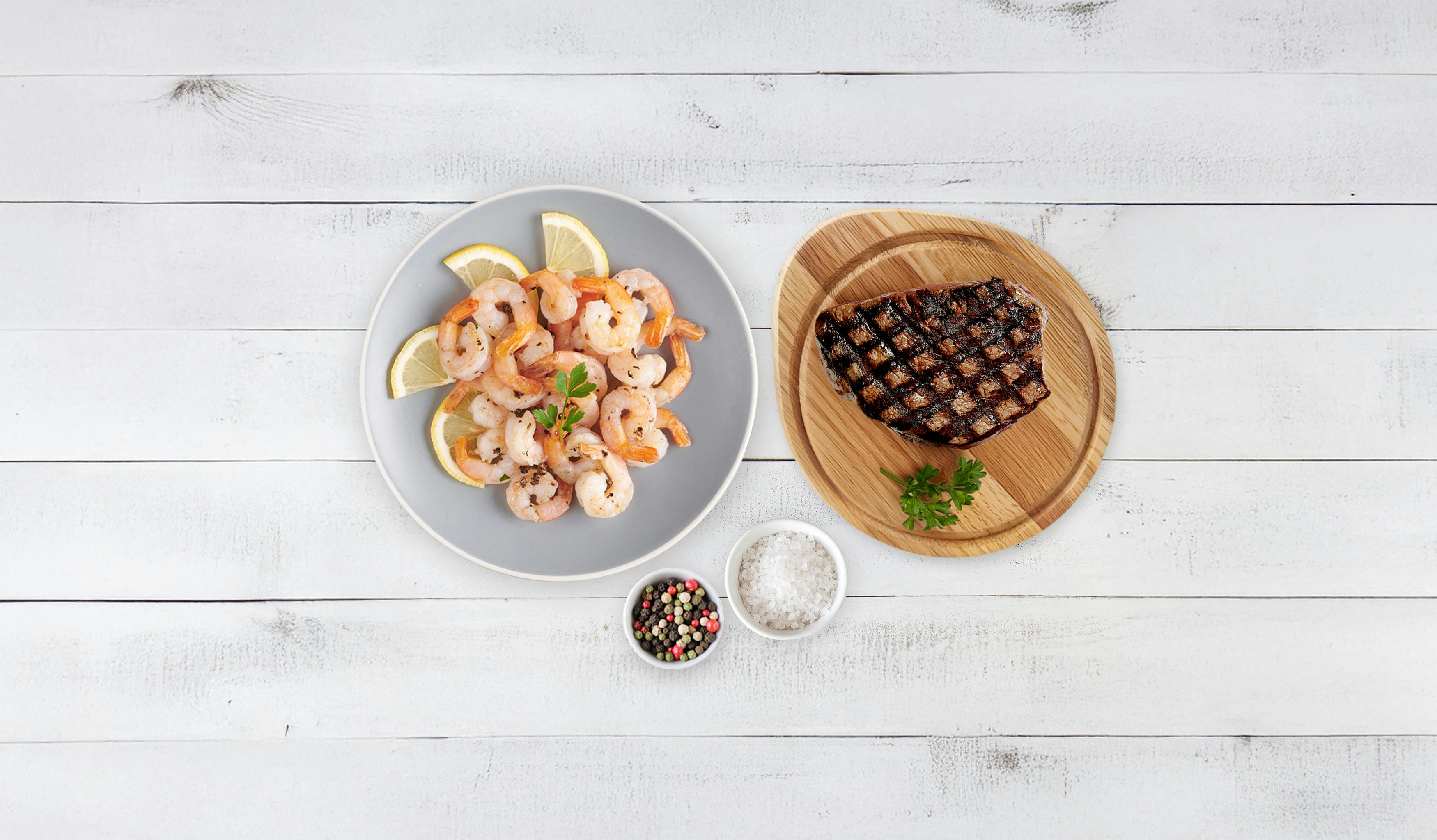Turn any night into a special occasion with the Surf & Turf Bundle. Featuring a premium AAA filet mignon paired with wild Argentinian shrimp, this classic combination brings together rich, tender beef and perfectly sweet, ocean-fresh flavour.